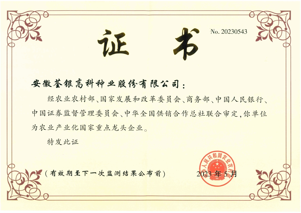 安徽荃銀高科種業(yè)股份有限公司是一家“以種業(yè)為核心、農業(yè)服務為延伸、探索和創(chuàng)新農業(yè)多元化發(fā)展”的現代高科技種業(yè)上市公司,證券代碼:300087。公司注冊資金9.47億元,系“中國種業(yè)領軍企業(yè)、農業(yè)產業(yè)化國家重點龍頭企業(yè)、國家高新技術企業(yè)、農業(yè)部首批農作物種子育繁推一體化企業(yè)、中國種業(yè)信用明星企業(yè)"。在國內控股子公司20多家,在國外設立分支機構4家,良種銷售至全國20多個?。ㄊ小^(qū)),出口覆蓋20多個國家與地區(qū),種業(yè)綜合實力、雜交水稻研發(fā)、推廣及海外業(yè)務規(guī)模均居全國種子企業(yè)前2位。